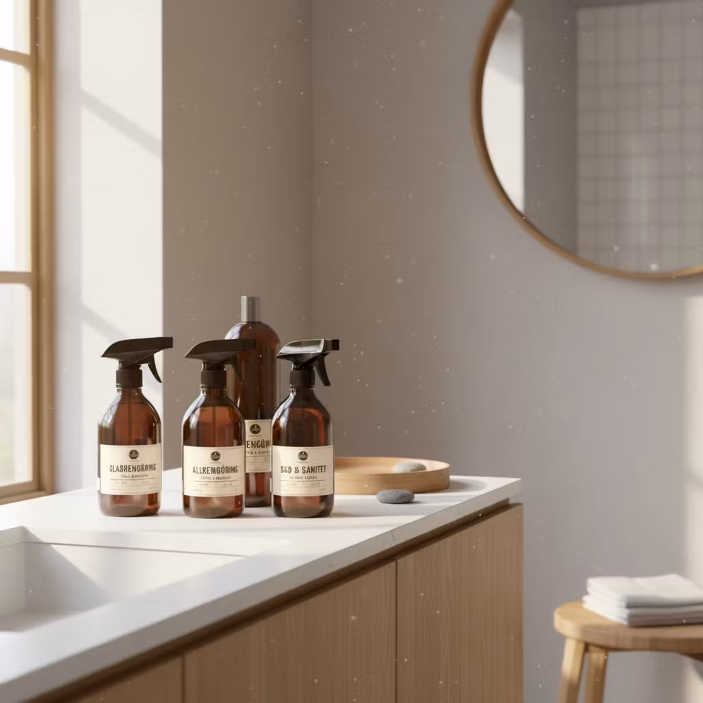 Ge ditt badrum en naturlig glans med vårt badrumsrengöringspaket – en komplett uppsättning svensktillverkade rengöringsprodukter som gör rent på djupet utan starka kemikalier. Perfekt för dig som vill ha ett skinande rent och väldoftande badrum med omtanke för både hemmet och miljön.